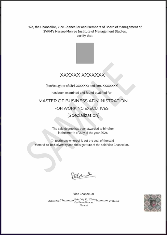 After successful completion of the Online BCom program, students are awarded a formal degree certificate issued by Narsee Monjee Institute of Management Studies. This certificate confirms that the learner has completed the Bachelor of Commerce program through online mode in accordance with the approved academic framework. The certificate represents the successful completion of an NMIMS online degree and follows institutional guidelines.The NMIMS Online BCom certificate carries academic credibility and reflects the institution’s commitment to quality education. As the program is a NAAC accredited Online BCom, the certificate is supported by structured curriculum delivery, defined evaluation processes, and academic integrity. This ensures that the certificate holds value for further education and professional use.Students who enroll in the Online BCom after meeting eligibility requirements and complete all academic and assessment criteria are awarded the certificate. The certificate clearly mentions the program name and the awarding institution, ensuring transparency and recognition. Learners planning BCom after 12 benefit from receiving a recognized degree that supports long-term academic growth.The NMIMS Online BCom certificate can be used for pursuing higher studies such as postgraduate programs, subject to eligibility conditions of the respective institutions. It can also support applications for entry-level roles in commerce, accounting, finance, and business-related fields. The recognition associated with an NMIMS online degree enhances the academic profile of students.The certificate is issued only after students successfully complete all required subjects and assessments as defined in the Online BCom curriculum. This ensures that academic standards are maintained consistently across all learners. The structured assessment process followed in the NAAC accredited Online BCom supports the credibility of the awarded certificate.Overall, the certificate awarded under the Online BCom program represents academic achievement, institutional trust, and quality learning. With the reputation of Narsee Monjee Institute of Management Studies, the value of a NAAC accredited Online BCom, and the flexibility of an NMIMS online degree, the certificate supports students planning BCom after 12 in achieving their academic and professional goals.